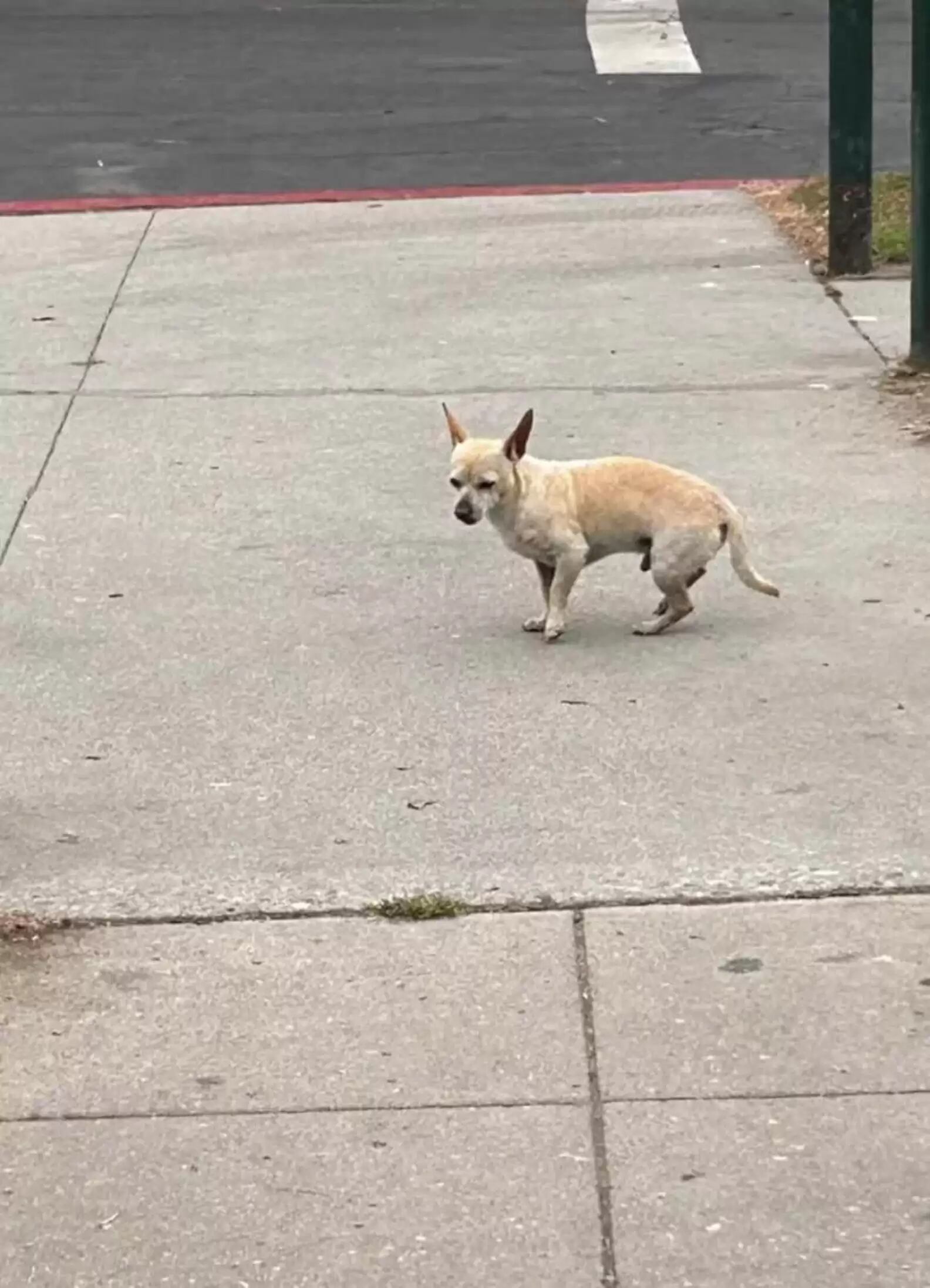 Um cachorrinho abandonado, no sul da Califórnia, foi deixado em uma esquina, até que pessoas ao redor estranhassem sua presença no local, pois nunca tinha sido visto por ali anteriormente. Relato extraído do portal The Dodo.