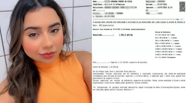 Eduarda Pompeu, de 20 anos, ficou desesperada com o resultado de um exame de gravidez positivo, que dizia que ela estava grávida há quatro semanas.