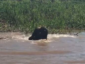 No registro, é possível ver o enfretamento selvagem em um rio na região, em um momento drámatico.