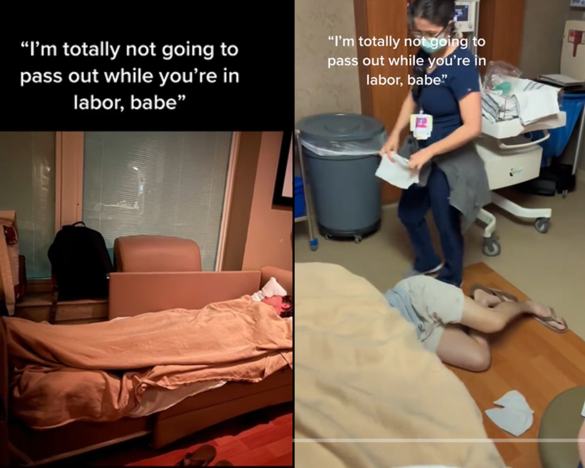 Após desmaiar no dia do parto do seu filho e ser filmado pela esposa, homem vira piada no TikTok. O motivo do desmaio? O pai do bebê não aguentou ver a agulha da anestesia que aplicariam na sua esposa.