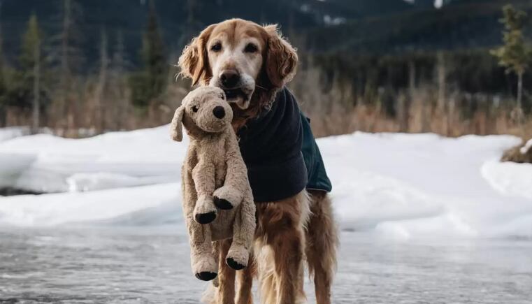 Um cãozinho chamado Gumbo, costuma carregar uma pelúcia parecida com ele para todo canto que passeia. Ao portal The Dodo, Hana, a mãe do golden retriever, contou que seu pet adora levar seu bichinho, Shrimp, para todo canto e exibi-lo.