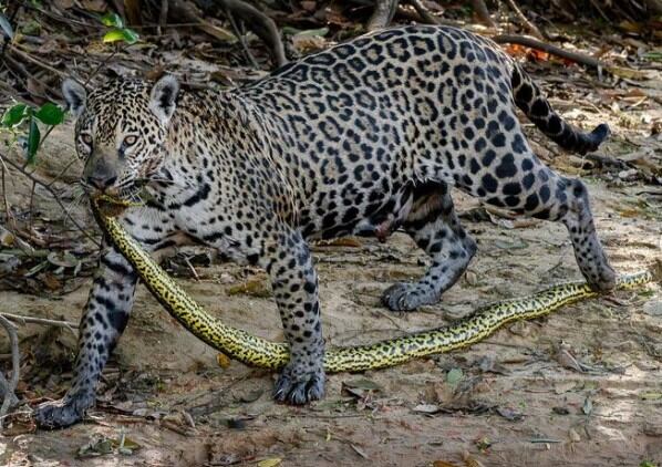 Um novo egistro impressiona ao flagrar o momento em que uma onça ignora perigo e captura um animal peçonhento no Pantanal.