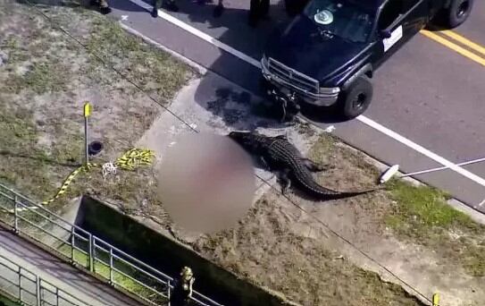 Um crocodilo de mais de quatro metros foi ‘interceptado’ por autoridades na Flórida, Estados Unidos, após ser visto carregando um cadáver humano na boca. O animal estava em um bairro residencial na cidade de Largo.