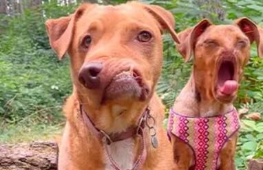Picasso, um mestiço de 7 anos, foi resgatado em 2017 por Liesl Wilhardt, fundadora do Luvable Dog Rescue. Sua deformidade, conhecida como boca torcedora, não o impede de viver uma vida plena. Ao mesmo tempo, Newt, um cão corajoso de três anos, perdeu a parte superior do focinho em um trágico acidente, quando sua mãe o mordeu ao nascer.