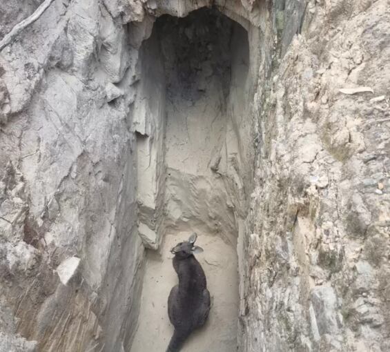 Um canguru foi encontrado preso em um poço de uma mina, em Maryborough, na Austrália. O animal teria ficado sem saída, até que surgiu uma luz no fim do túnel. No entanto, ao ser encontrado, perceberam a presença de outro ser. Relato extraído do portal The Dodo.