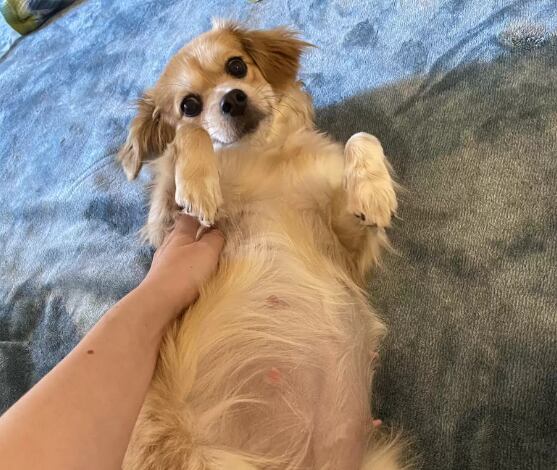 Uma cadela foi encontrada perdida em Oklahoma, nos EUA, e imediatamente encaminhada a Denver por meio do instituto A Friend of Jack. No entanto, pouco se sabia sobre o cãozinho, mais tarde nomeado de Cheesecake. De acordo com o artigo do portal The Dodo, a juventude e a timidez do pet era o que se destacava.