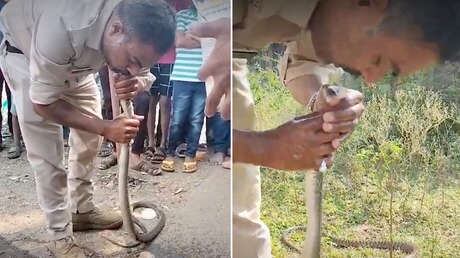 De acordo com o portal RT, o caso aconteceu em Madhya Pradesh, na Índia e a cobra não era venenosa. O incidente foi chamado de “beijo da vida”, pois graças a isso a cobra sobreviveu.