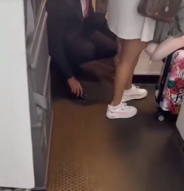 Testemunhas afirmam que o comissário tentou encobrir o ato chocante, fingindo examinar um objeto no chão. Ele manteve a cabeça baixa enquanto revirava o conteúdo de uma gaveta, que parecia conter mini garrafas de álcool, ao mesmo tempo em que deslizava o telefone para filmar por baixo da saia da passageira, sem olhar para ela.