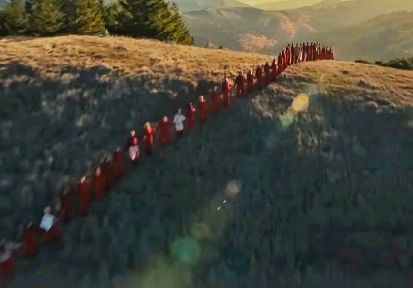 Nos instantes iniciais do filme "Nós", a personagem Adelaide Wilson se depara com uma imagem ao olhar pela janela da casa onde mora: uma família de mãos dadas formando uma corrente.