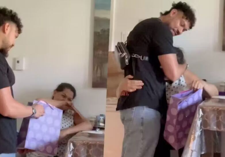 Quando Dinora abriu o presente, as lágrimas fluíram, e um abraço apertado uniu mãe e filho. O vídeo da surpresa, inicialmente compartilhado em julho, ganhou destaque recentemente nas redes sociais.
