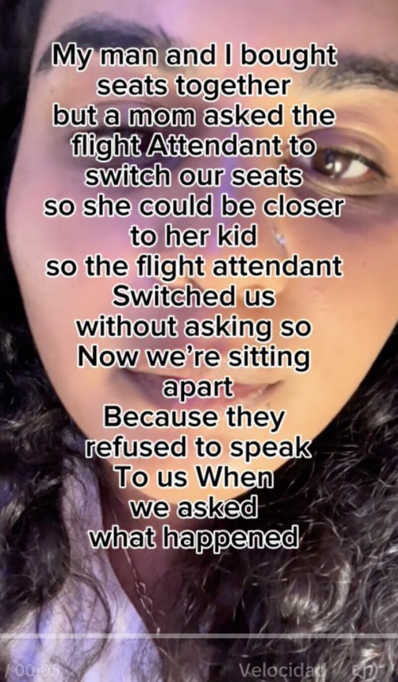 “O meu namorado e eu tínhamos pago antecipadamente para selecionar os assentos e sentar um ao lado do outro”, relatou a jovem no TikTok, de acordo com o que foi registrado pela ‘La Vanguardia’.