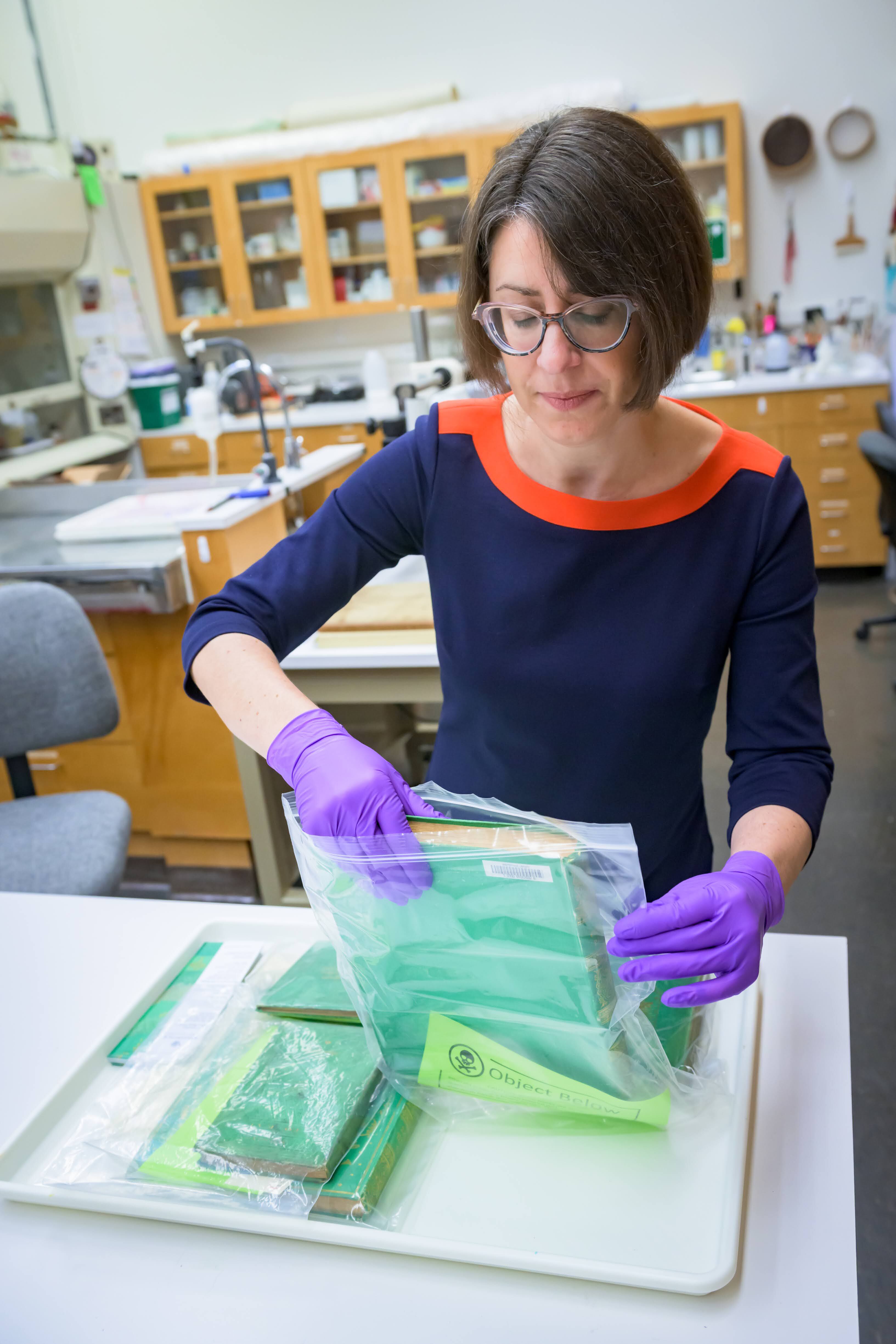 - Gosto de pensar que nossa pesquisa tem incentivado nossos colegas que trabalham com livros históricos a serem mais conscientes dos riscos potenciais para a saúde e segurança. Quem poderia pensar que manipular livros pode ser perigoso para a saúde? O maior risco desses livros que contêm arsênico é simplesmente não saber que o risco está lá. Uma vez confirmado que um livro contém arsênico, medidas bastante simples podem ser tomadas para garantir a segurança pessoal. Recomendamos embalar um livro com arsênico em um saco plástico com fecho zip para conter qualquer possível liberação de pigmento. Também recomendamos o uso de luvas de nitrilo ao manipular o livro e evitar comer, beber, fumar ou tocar o rosto até ter a oportunidade de lavar as mãos após a manipulação. Também espero que o projeto tenha chamado a atenção para o valor das encadernações do século XIX de uma nova maneira. Esses livros nem sempre foram apreciados como objetos, pois não são tão antigos nem tão raros como muitos outros tipos de encadernações. Espero que nossa pesquisa demonstre que os livros podem ser especiais não apenas por seus textos, mas também porque contêm evidências físicas do passado. O pigmento de arsênico desses livros contribui tangivelmente para nossa compreensão da história manufatureira e econômica da Inglaterra, bem como para o desenvolvimento do comércio de livros.