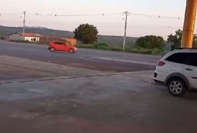 No registro, é possível ver o acidente captado pelo passageiro do veículo. Uma pessoa que também estava no posto acabou registrando o mesmo momento.