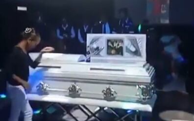A despedida aconteceu no meio da pista de dança, junto a familiares e estranhos que foram para dançar, mas se depararam com um caixão.