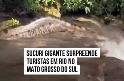 Uma sucuri gigante foi avistada por turistas no último sábado (10/2) no Balneário Santuário do Prata, em Jardim, no Mato Grosso do Sul.