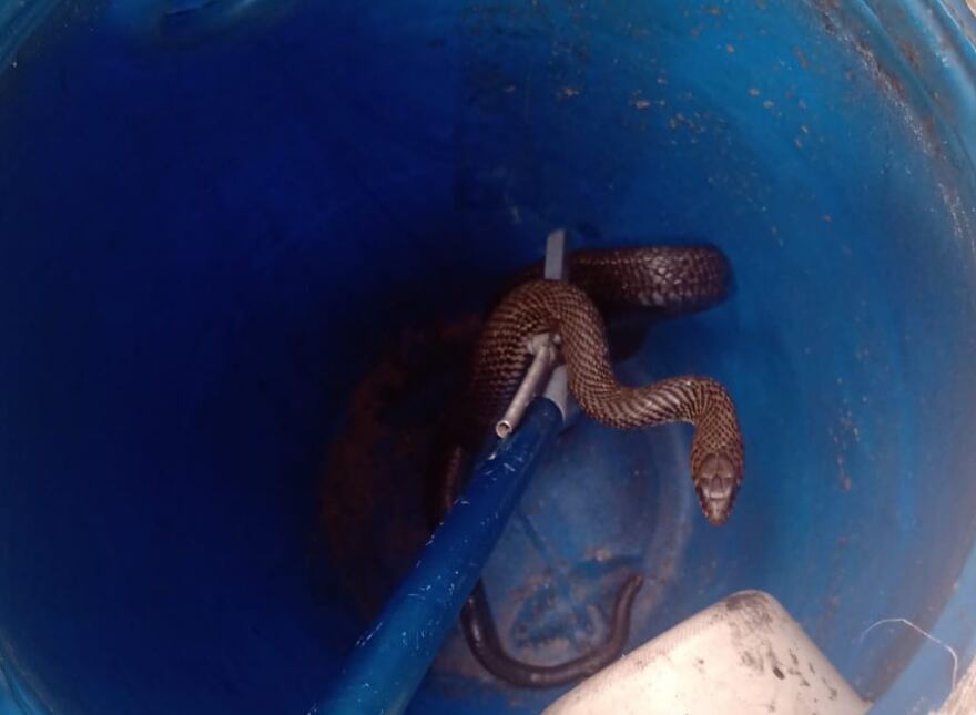 Em pouco tempo, os bombeiros chegaram ao local e encontraram a serpente escondida embaixo de um dos móveis da lavanderia. O animal foi capturado em segurança e levado para uma área de mata distante da residência em que foi encontrado.