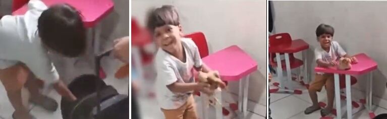 Um vídeo que está viralizando na internet mostra uma criança de 4 anos que levou uma galinha para a escola escondida dentro da mochila. O caso aconteceu em Formosa (GO).