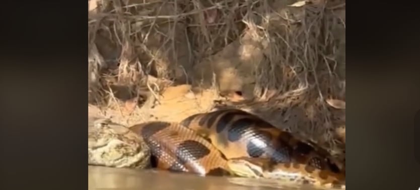 Na postagem, foi detallhado: “Vídeo impressiona ao flagrar sucuri predando jacaré gigante em rio no Pantanal”.