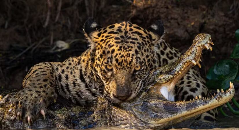 Entre as imagens destacadas, temos uma impressionante captura de uma onça-pintada no momento exato em que ataca um jacaré nas águas do Pantanal, retratando a crua realidade da cadeia alimentar na natureza.