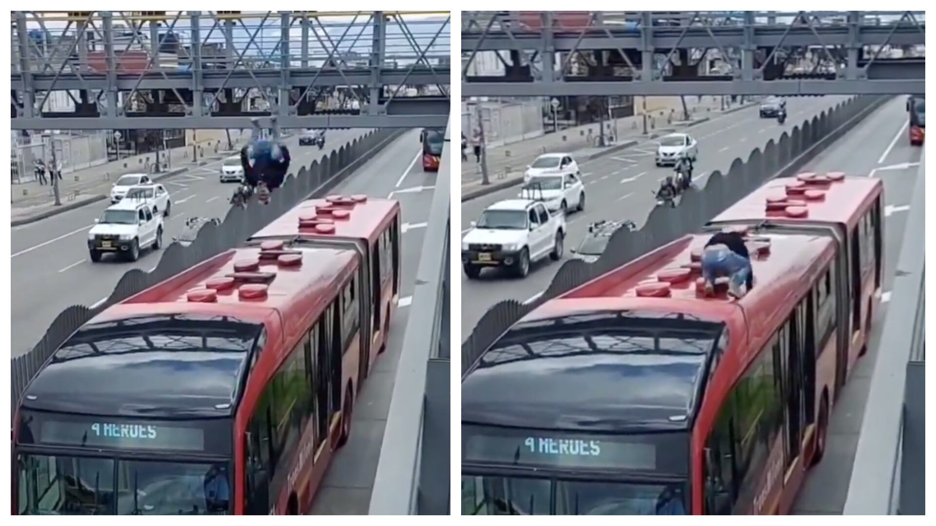 Foi revelado em um vídeo divulgado nas redes, onde um jovem é visto realizando uma acrobacia em um ônibus articulado. Vários usuários ousaram chamar o jovem acrobata de Homem-Aranha de Bogotá por sua ação intrépida no ônibus articulado.