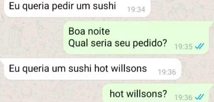 Éder Artur Marques, funcionário do restaurante, conta que, em um dia comum de trabalho, recebeu um pedido inusitado de uma cliente que se referia ao hot roll como hot willsons.