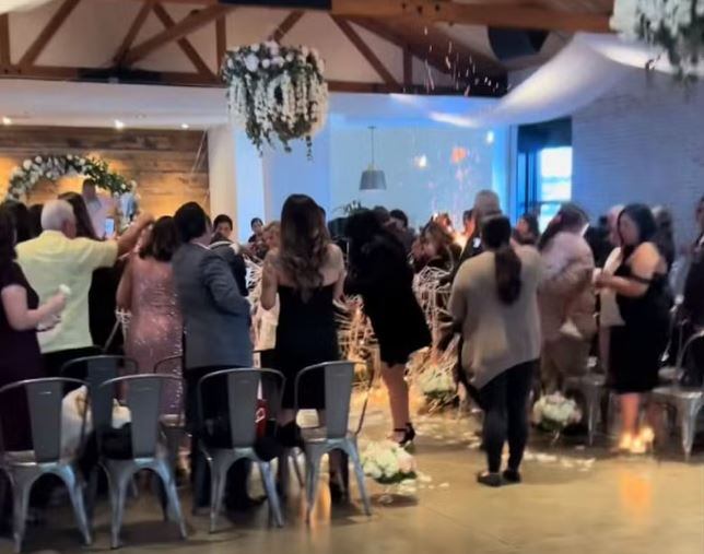 Quem registrou o momento inusitado foi a pintora de casamentos Bailey, que utilizou seu perfil no TikTok para compartilhar o vídeo. Ela também aproveitou para confirmar que, apesar do vestido danificado, ninguém se feriu. O vídeo foi compartilhado por diversas páginas e perfis.