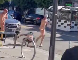 De acordo com o relato dos nudistas, eles caminhavam pela Castro Street quando se depararam com um “pirata maluco” querendo atacar o homem com o maçarico.