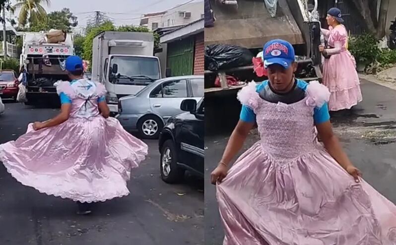 O caso viral foi divulgado através da conta do TikTok @vladymartinez3. No início, foi observado que um dos trabalhadores de limpeza, enquanto dançava de um lado para o outro em direção ao caminhão de lixo, usava um vestido rosa de cetim.
