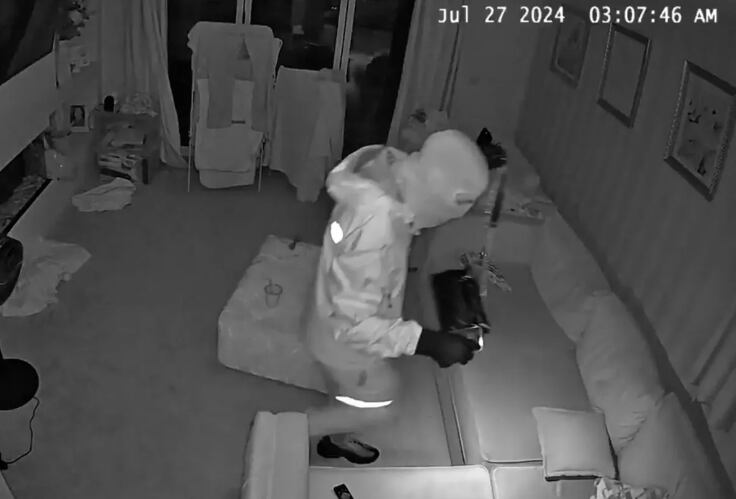 Uma mulher passou por um grande susto ao receber um telefonema da filha às 3h da madrugada, sinalizando a presença de um invasor dentro da sala de estar em Liverpool, na Inglaterra. O suspeito usava uma balaclava, luvas e um agasalho esportivo enquanto vasculhava o ambiente com uma lanterna.