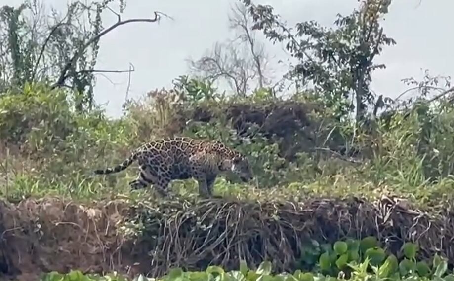 No vídeo, é possível ver o momento em que a onça se aproxima tranquilamente e de forma perspicaz.