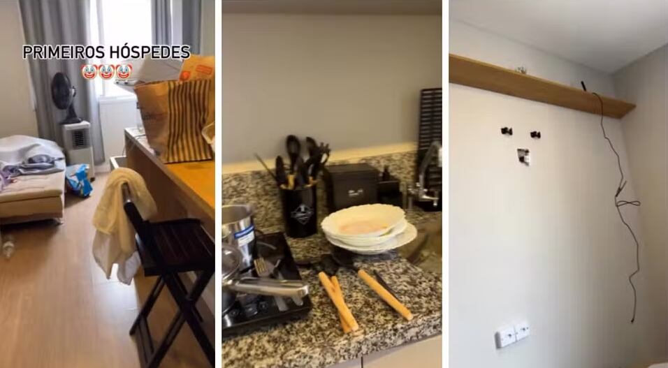 Daniela, que há anos utiliza a plataforma para alugar outros imóveis, relatou que nunca havia enfrentado uma situação semelhante. Louças sujas, lixo espalhado e itens revirados compunham o cenário deixado pelos inquilinos, além do sumiço da TV. Apesar do ocorrido, a proprietária elogiou a resposta rápida da plataforma, que a reembolsou pela estadia e baniu os responsáveis.