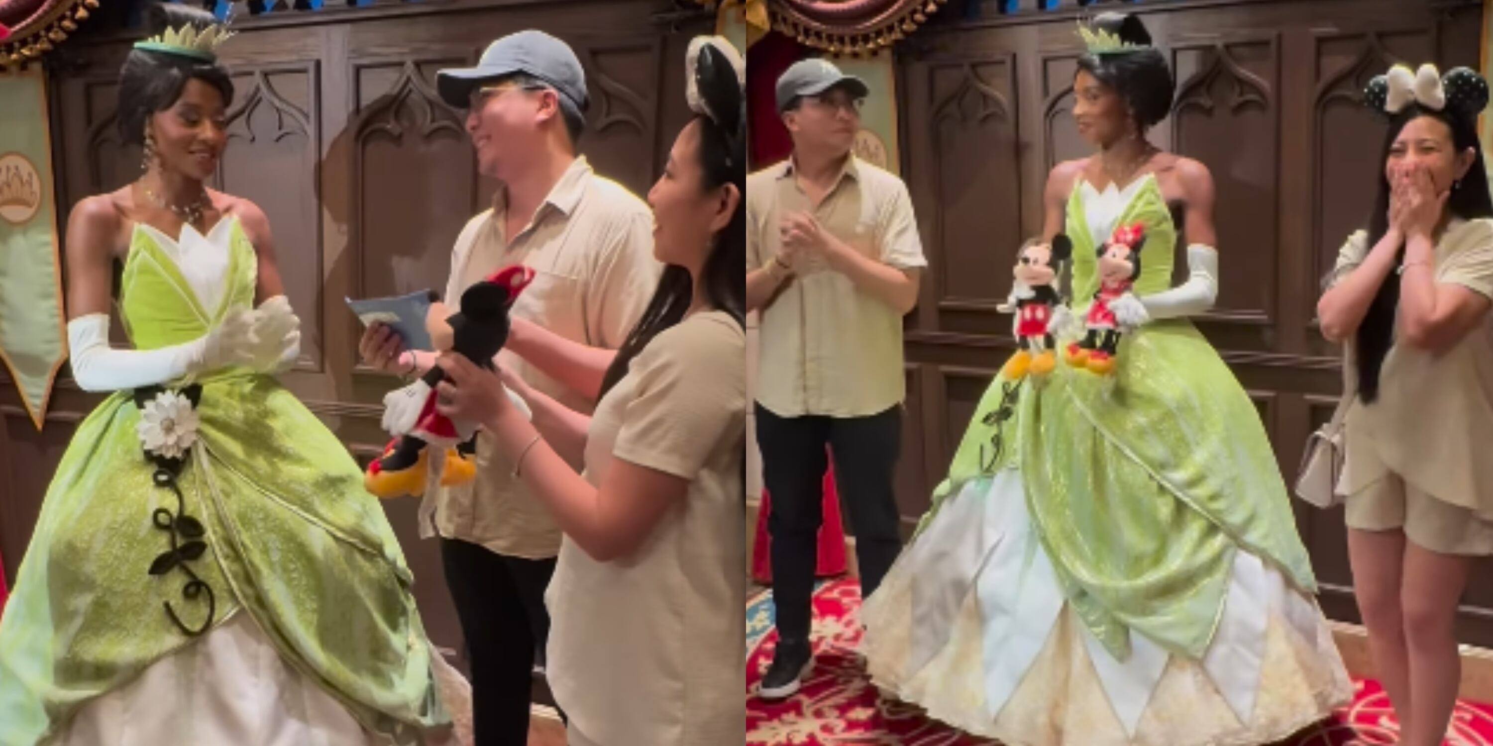 Na publicação, que acumula 1,2 milhão de reproduções e 136 mil curtidas, o casal, que estava na Disneylândia, aparece se aproximando da princesa Tiana, personagem principal do filme de animação ‘A Princesa e o Sapo’, com um envelope nas mãos e dois bonecos, Minnie e Mickey.