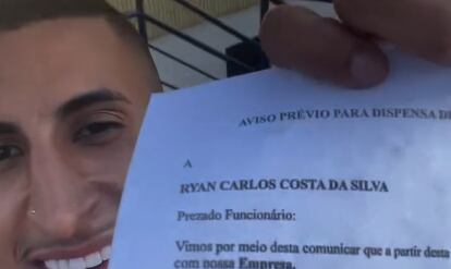 Na postagem, compartilhada no Instagram, o jovem Ryan Silva aparece mostrando a carta de rescisão.