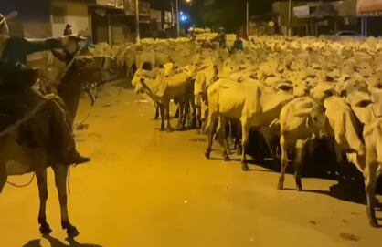 Em um momento impressionante, vm vídeo flagrou a gigantesca travessia de uma boiada pelas ruas de uma cidade no estado de Goiás. No registro, é possível ver a rua totalmente tomada pelos animais e o peão demonstrando suas habilidades com os animais.