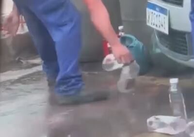 Os funcionários trocam as embalagens dos produtos vendidos, cheias, por recipientes vazios. Na gravação, é possível ver os homens manipulando quatro garrafas de aditivo.