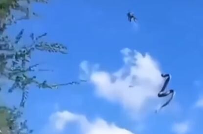 O momento que acabou viralizando nas redes sociais deixou internautas curiosos sobre a forma como a aranha australiana capturou a cobra no ar.