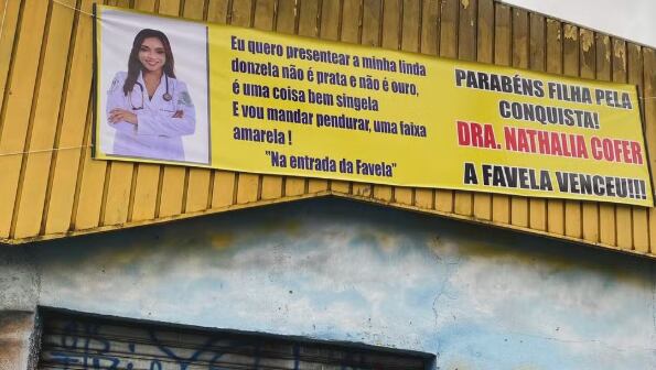 Conforme noticiado pelo G1, em comemoração à formatura da filha, Janilton Correa pendurou uma faixa amarela na fachada de sua oficina, localizada no Parque Guarani, com a frase: “Parabéns, filha, pela conquista. Dra. Nathalia Cofer. A favela venceu.”