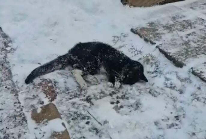 Uma pequena gata preta e branca, debilitada pelo frio e pela fome, nas ruas de Pittsburgh, se arrastou até a entrada de uma casa, onde desabou na neve. Carly Toth, coordenadora de resgate da organização Pet Friends, recebeu um chamado urgente sobre um gato congelado em McKeesport e correu para ajudar, segundo um artigo do The Dodo.