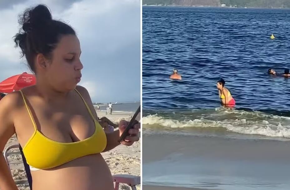A gestante, que estava com 39 semanas, viu sua bolsa estourar logo após chegar à areia. Mesmo com a insistência dos familiares para ir à maternidade, preferiu aguardar até que as contrações se intensificassem.
