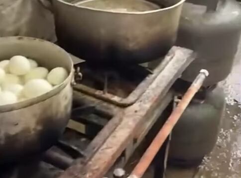 A produção dos alimentos era feita nos fundos de uma casa. Imagens feitas no local mostram alimentos sendo preparados em um fogão tomado por ferrugem, localizado em uma área descoberta.